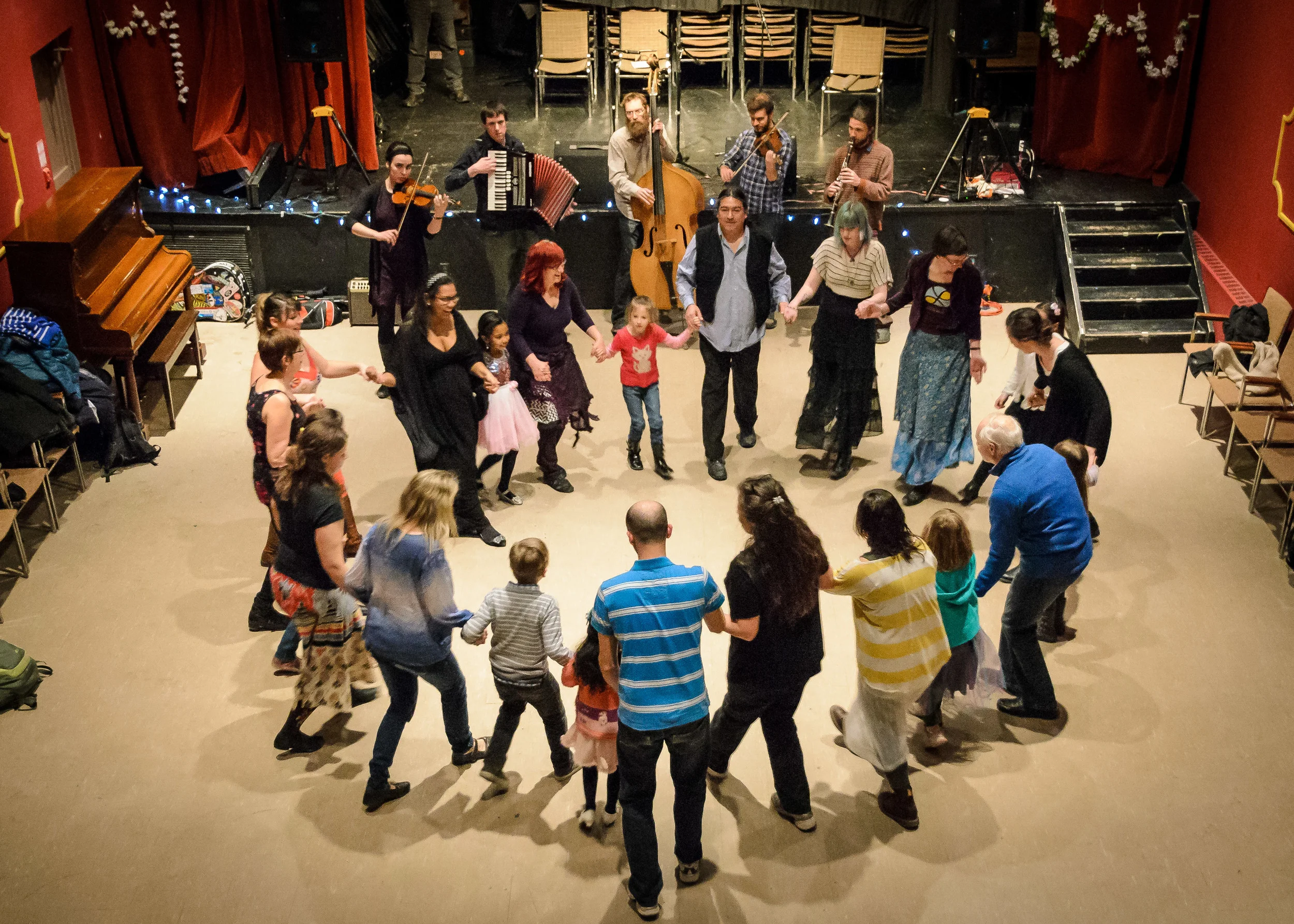 Get moving and travel around Europe in this social dance workshop! Every day we will learn the basics from various European social folk dance traditions. This kind of dancing is non-performance oriented, and is open to people who have no experience dancing. We will learn Ukrainian village dances, Balkan ‘kolo’ line dances, energetic mixer dances and groovy couple dances from western Europe, plus Breton chain dances from the west coast of France. This class will be accompanied by live music! Attending this workshop will prepare you and give you a head start to the fun that will be had in our evening dances.